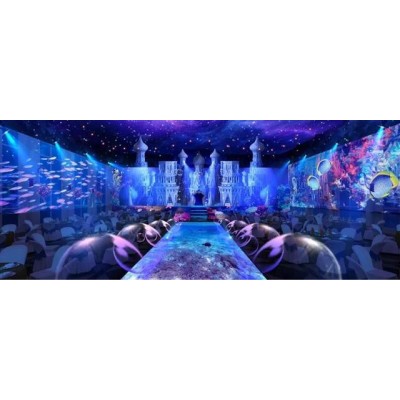 在沉浸式餐廳中,可以體驗多種環境氛圍。如原始森林、海底世界、浪漫花海等,實現各個場景的瞬間切換置身其中,改變了傳統餐廳道具固定的形式,為餐廳實現了各種場景變換的可能。利用全息影像技術做出逼真的舞臺立體投影效果,并達到身臨其境的感覺,讓現場來賓無不沉醉其中。客戶可以近距離感受聲、光、電完美融合的視覺盛宴,如同置身于一場華麗的電影之中。
