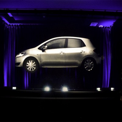 4 .融合展示:可以將現場產品推介主講人、汽車模特、甚至參觀者等直接摳像合成到幻影成像展示系統中。