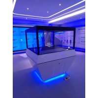 柜體時(shí)尚美觀,有科技感;頂端四面透明,真正的空間成像;色彩鮮艷,對(duì)比度,清晰度高;有空間感,感,形成空中幻象;中間可結(jié)合實(shí)物,實(shí)現(xiàn)影像與實(shí)物的結(jié)合;也可配加觸摸屏實(shí)現(xiàn)與觀眾的互動(dòng);
