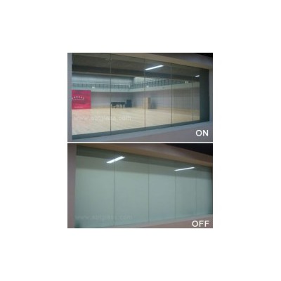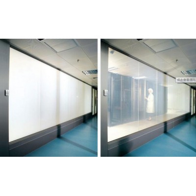 電控調光玻璃是一款新型環保的高科技光電玻璃產品,又稱電子窗簾,霧化玻璃,電控玻璃等.是將聚合物分散型液晶調光膜覆蓋eva或pvb膜再夾于兩層玻璃中間,經過高溫高壓膠合后一體成型的夾膠電控調光玻璃.可通過控制電流使其在透明和不透明兩種狀態進行瞬間轉換.玻璃本身具體一切安全玻璃的特性,同時又具備控制玻璃透明與否的隱私保護功能.同時在光線適宜的環境下.可作背面投影幕布使用.