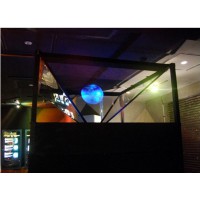柜體時尚美觀,有科技感;頂端四面透明,真正的空間成像;色彩鮮艷,對比度,清晰度高;有空間感,感,形成空中幻象;中間可結合實物,實現影像與實物的結合;也可配加觸摸屏實現與觀眾的互動;
