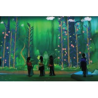 Connected World中的每一個棲息地都運行在一個單獨的設(shè)備上,全場供有15臺投影機(jī)器保證效果的實現(xiàn),7臺用于地面,6臺用于墻面,2臺用于瀑布。整個系統(tǒng)就像一個不用戴VR的VR游戲,小朋友們進(jìn)入到了一個奇妙的世界,游客還可以通過控制水量蒸發(fā)速度影響植物生長速度來增加游戲的變化走向。