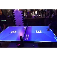 下面這個展項也很有趣,將是一場乒乓球的革命,在傳統(tǒng)玩法的基礎(chǔ)上增加了游戲和社交的成分,游戲互動效果被投影到乒乓桌上,乒乓球的運動軌跡帶著動畫效果并同步被記錄得分。