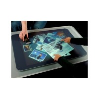 通過背投形式將虛擬影像疊加在特制的玻璃或者其他透明物體上,監控設備將對人的手指接觸點進行監控與感知,并將獲得的數據傳輸回電腦處理,