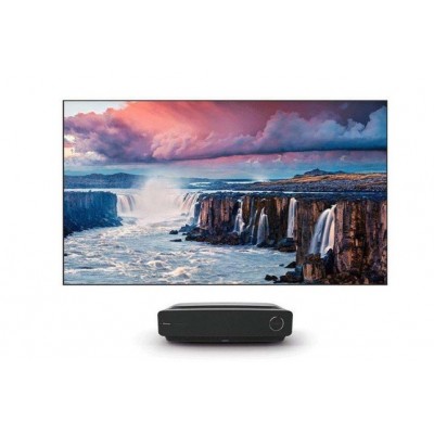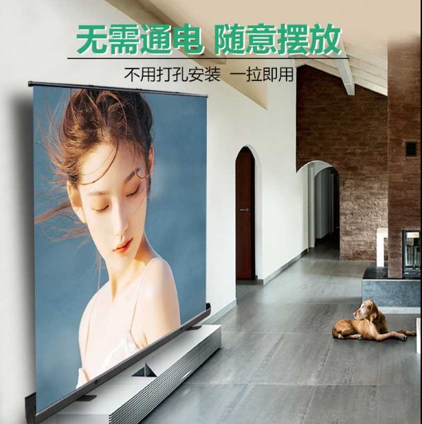 深圳悅創意科技公司發布的黑柵壁掛抗光幕布 可隱藏升降自動家庭影院超短焦投影儀專用幕布圖集庫